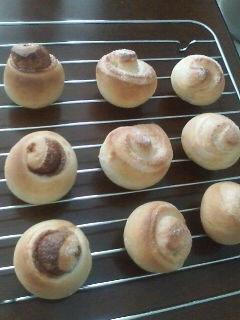 土曜日に焼いたちびシナモロールと、メープルロール。