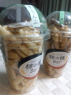 期間限定の柿の種Barで、山椒味とすこんぶ味を買いました。どちらもイケてます。