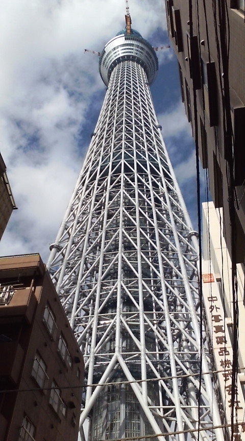 その後、同僚と社会見学へ。噂の東京スカイツリーを見てきました。いやはや、圧巻。いいもの見せていただきました。天気が良かったので青い空を背景にして、白い塔がそびえてました。