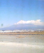 新幹線の中から見た富士山。富士山が見え始めると、車内あちこちで携帯カメラのシャッター音が鳴り響いていました。この後、すぐにもやに隠れてしまったのですが、意外と大きく見えてびっくりでした。